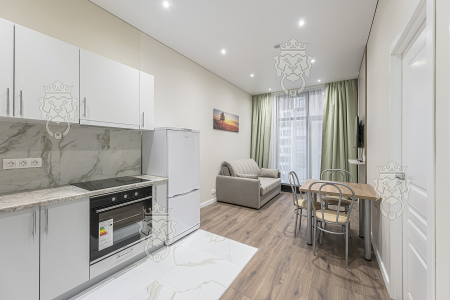 Без животных. Предлагается в аренду апартамент формата «евродвушка» в ЖК бизнес-класса «Зорге 9». Выполнен качественный современный ремонт. Апартамент полностью меблирован и укомплектован необходимой техникой. Планировка: кухня – гостиная; изолированная спальня; совмещенный санузел (душ). Установлены: кондиционирование; проточный водонагреватель; интернет. Высокие потолки. Панорамное остекление. Окна во двор.