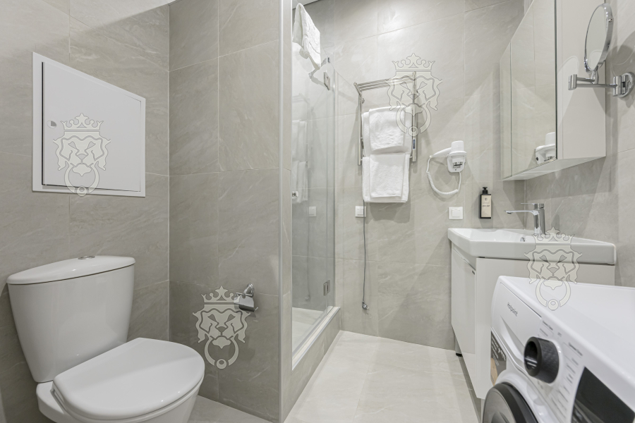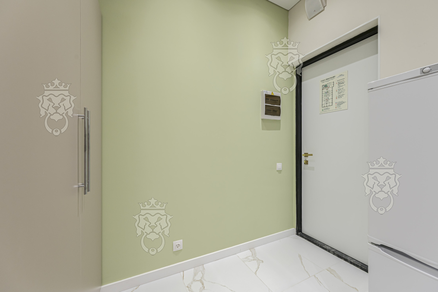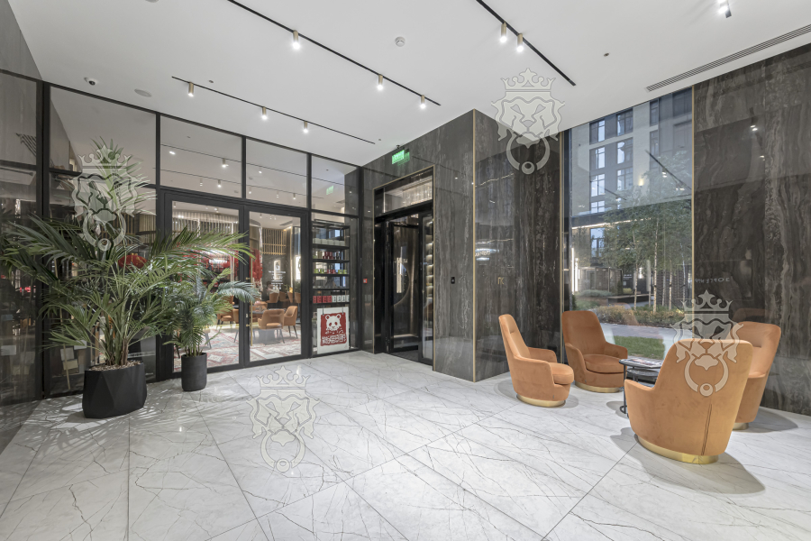 На первом этаже презентабельная входная группа с лобби, зайти можно по FaceID или отпечатку пальца. Видеонаблюдение. Консьерж.