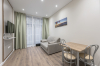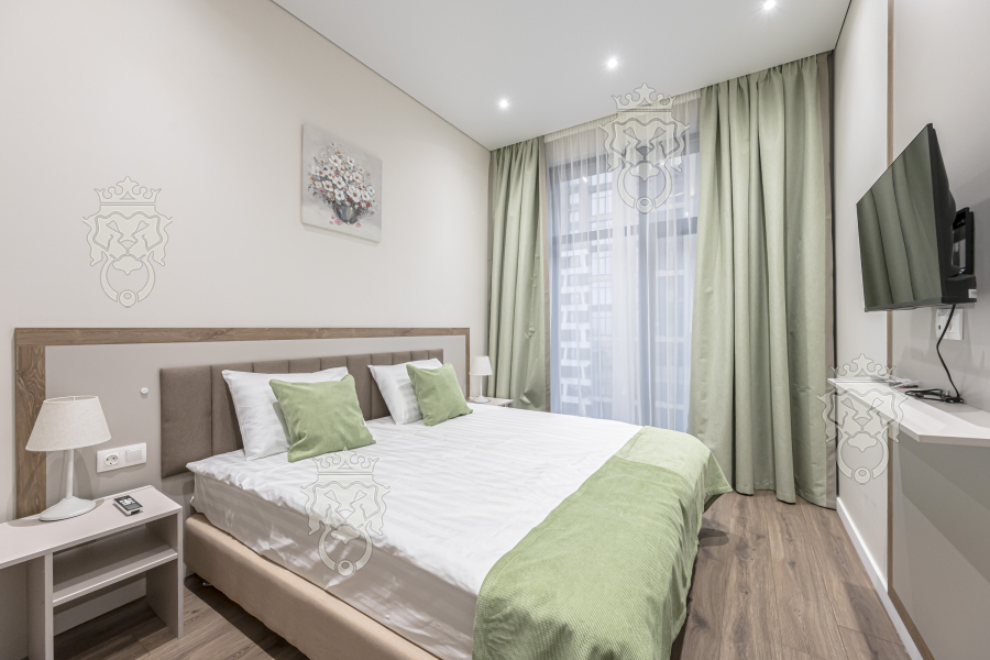 Без животных. Предлагается в аренду апартамент формата «евродвушка» в ЖК бизнес-класса «Зорге 9». Выполнен качественный современный ремонт. Апартамент полностью меблирован и укомплектован необходимой техникой. Планировка: кухня – гостиная; изолированная спальня; совмещенный санузел (душ). Установлены: кондиционирование; проточный водонагреватель; интернет. Высокие потолки. Панорамное остекление. Окна во двор.
